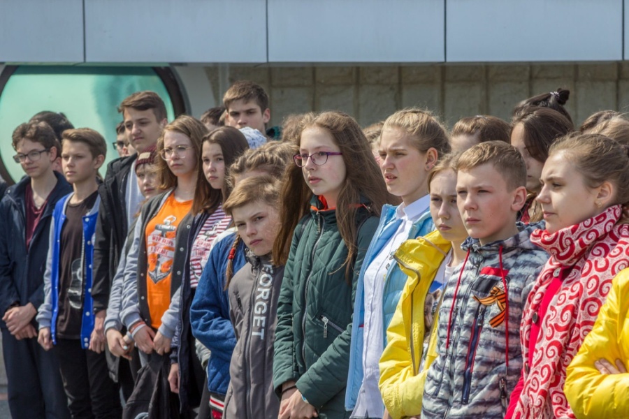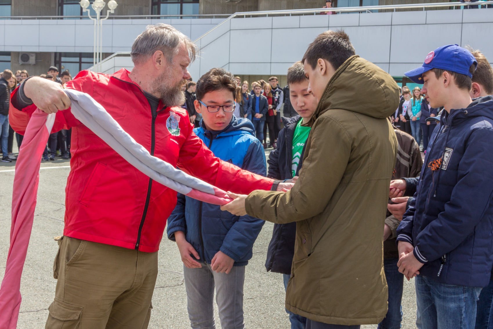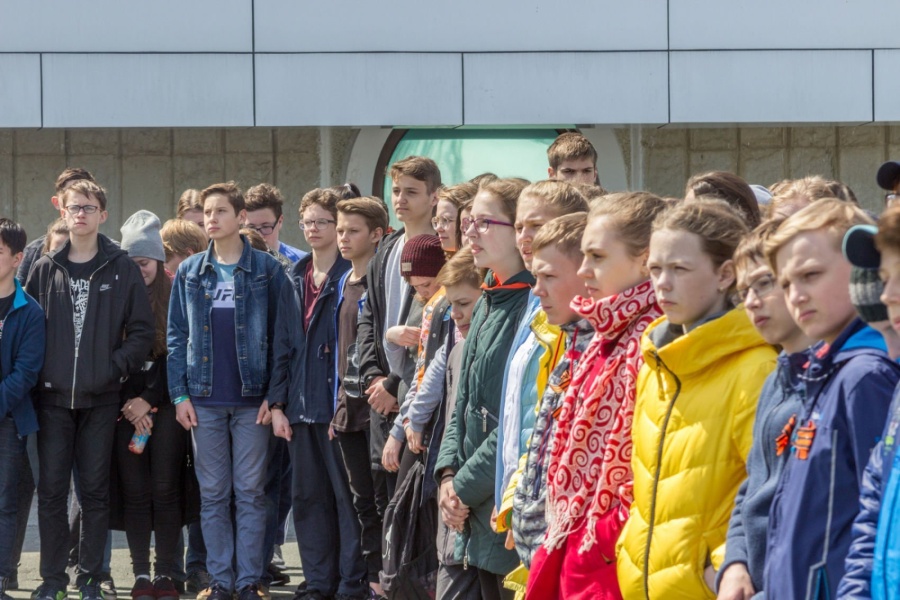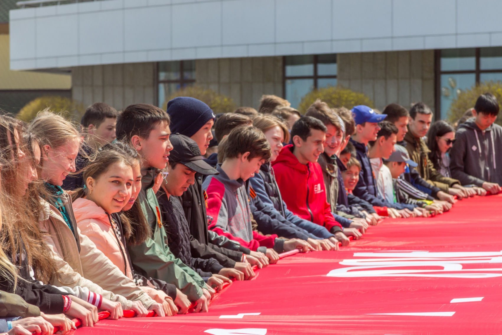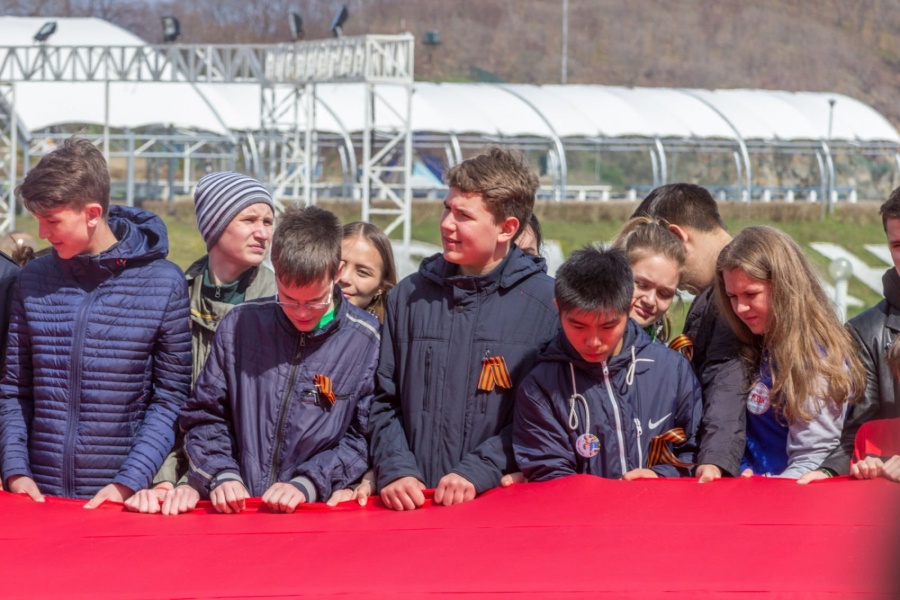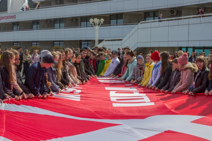 Церемония разворачивания копии Знамени Победы в честь 73-й годовщины победы в Великой Отечественной войне