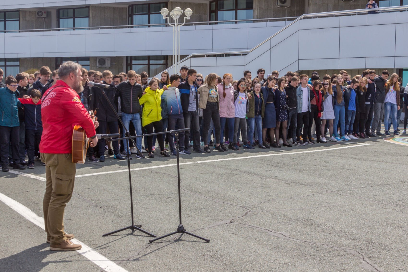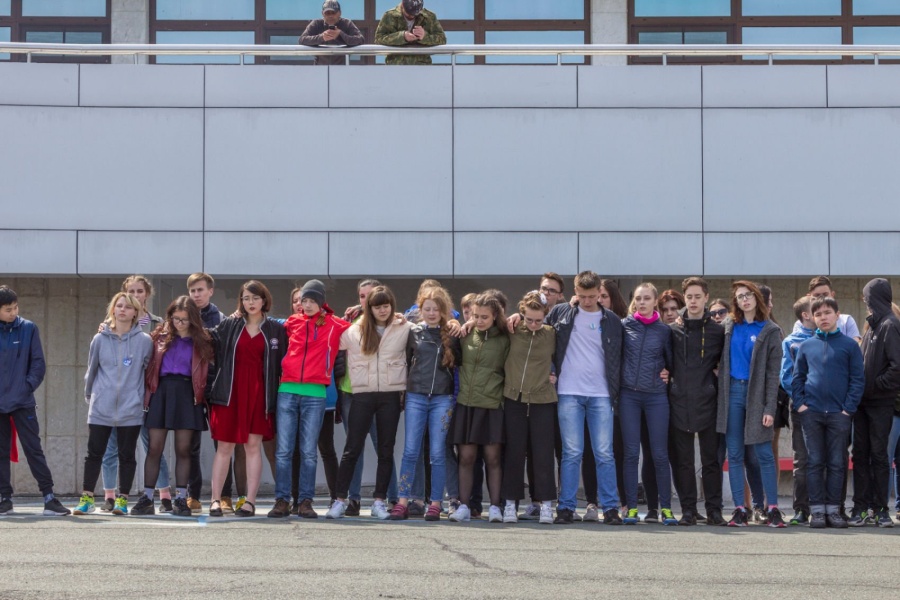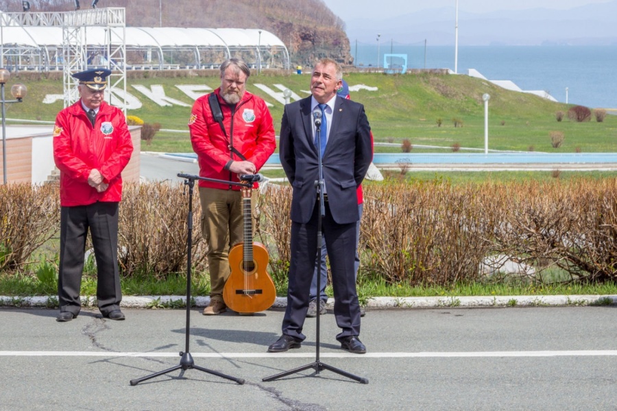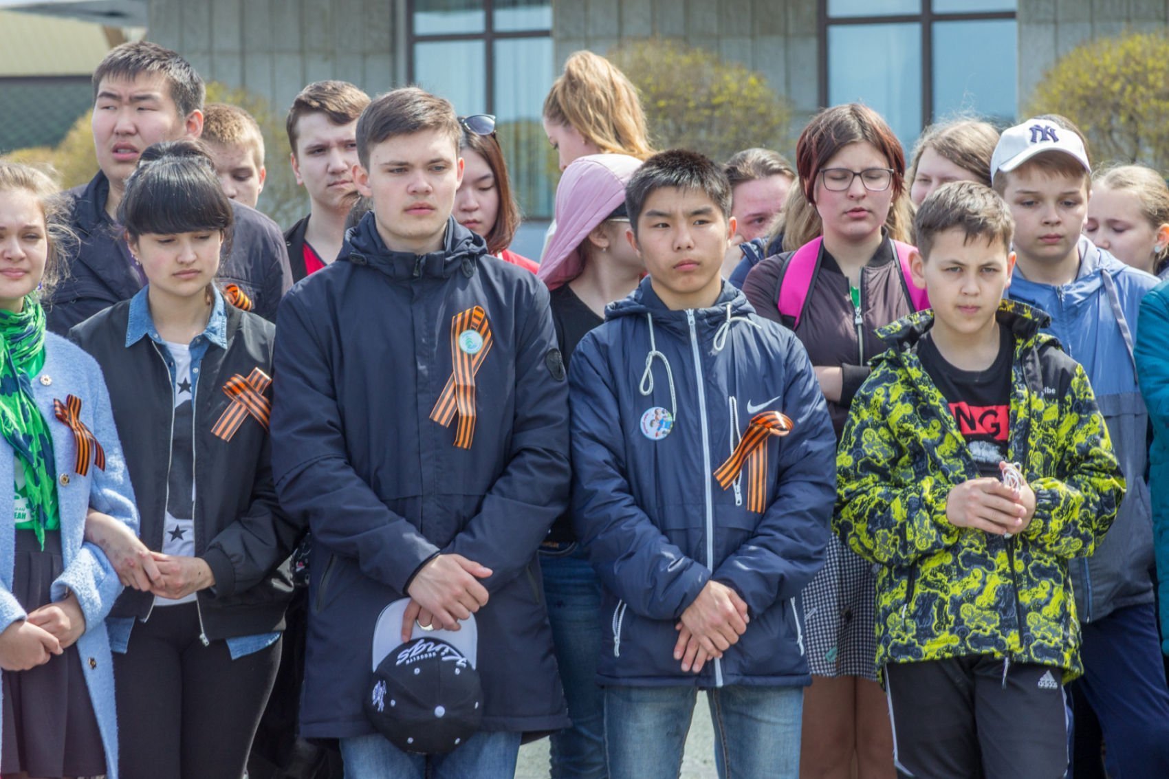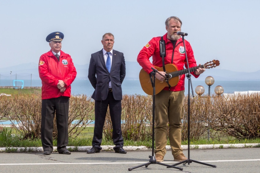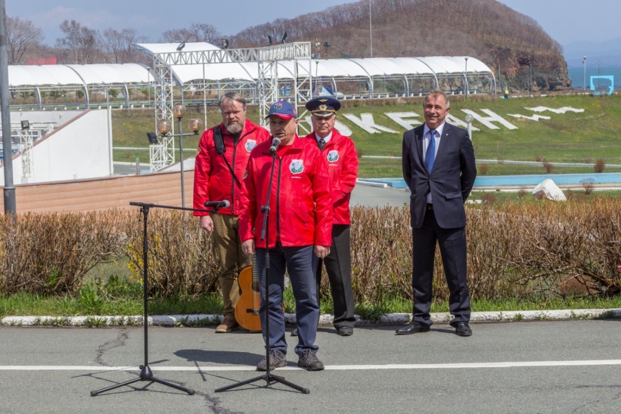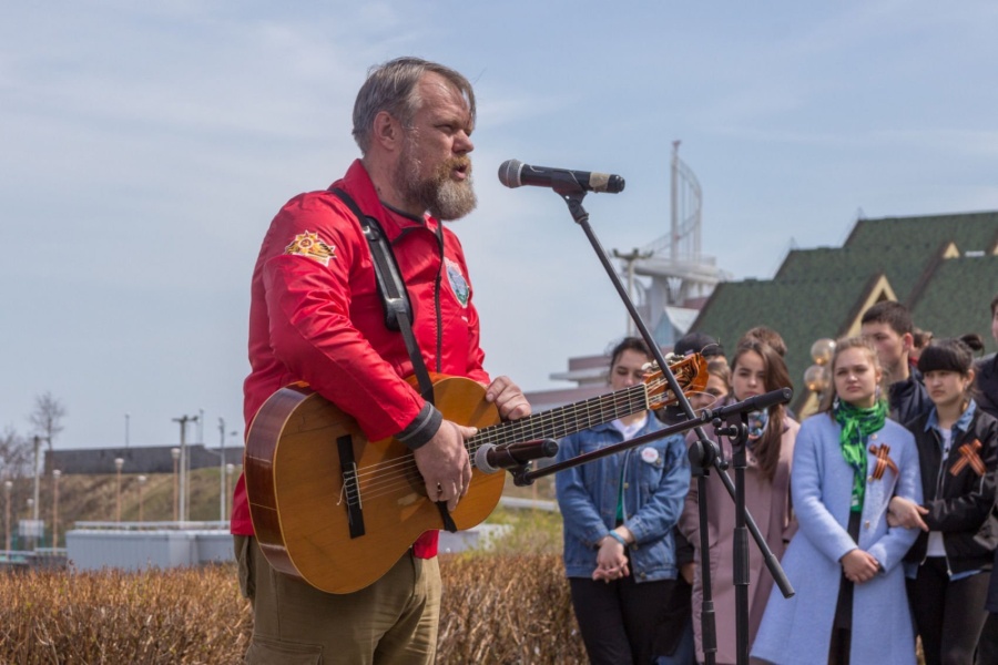 Церемония разворачивания копии Знамени Победы в честь 73-й годовщины победы в Великой Отечественной войне