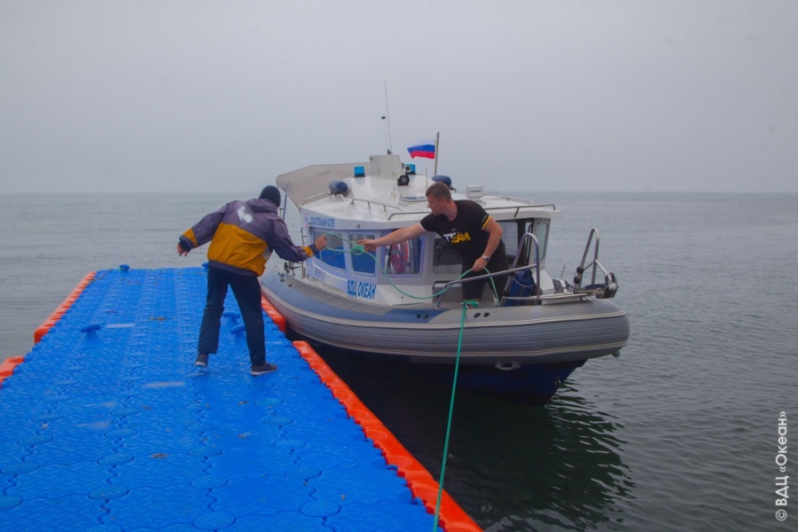 Прибытие спасательного катера ВДЦ «Океан» на понтонный пирс