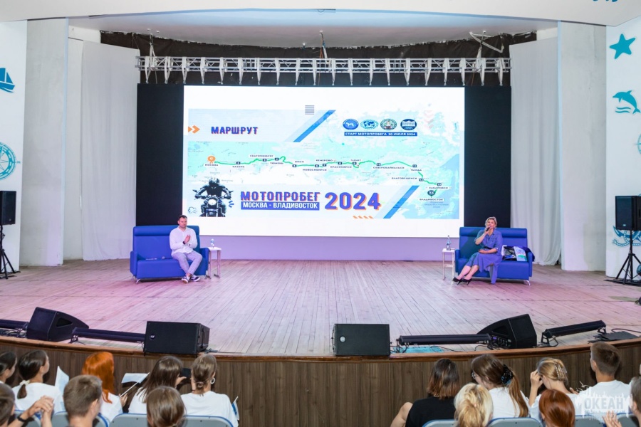 Встреча с мотопутешественницей Татьяной Зиганшиной, совершившей мотопробег Москва – Владивосток («Планета цирка», «Страна железных дорог», «Детская лаборатория туризма „Родные маршруты“», «Океанский марафон активностей», «Проба в профессиях», Модуль «Финансовая академия FINOcean», Модуль «Курс на бизнес и предпринимательство», Модуль «Отличники первых», Модуль «Юный следователь», Модуль «Юный казначей», Модуль «Юный правовед», Модуль «Мы – государство»)