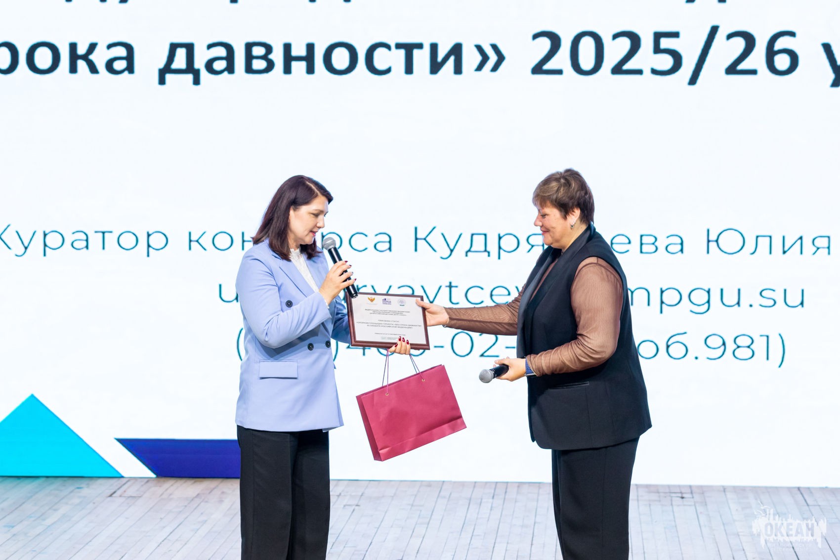 Вручение документа о присвоении ВДЦ "Океан" статуса опорной площадки "Без срока давности"