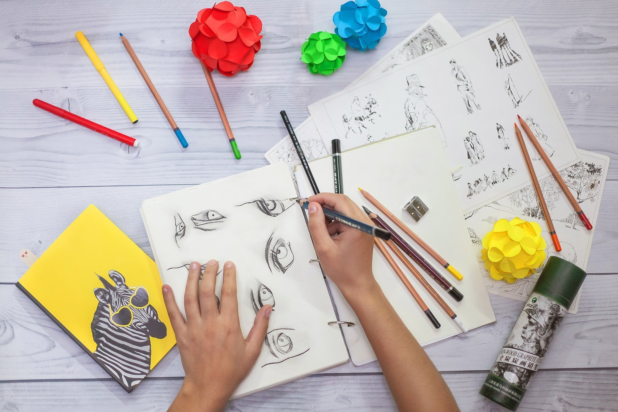 - научить основам работы в техниках «графика» и «пастель» различными художественными материалами (карандаш, акварель, пастель, сепия, сангина, цветные карандаши).