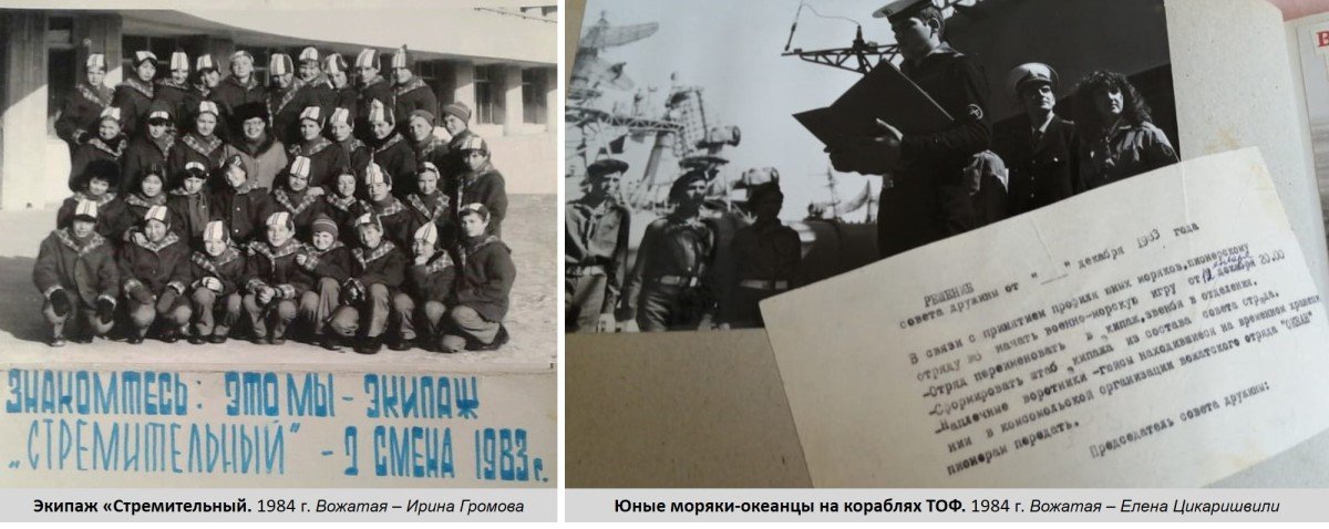 Самые первые отряды юных моряков в «Океане» создали вожатые Ирина Громова и Елена Цикаришвили ещё в 1984 году. Ребята с гордостью носили морскую форму, до блеска начищали пряжки ремней, изучали семафорную азбуку, азбуку Морзе, учились вязать морские узлы, выезжали на военные корабли и подводные лодки. А ещё были незабываемые встречи с ветеранами-юнгами известных «огненных рейсов».