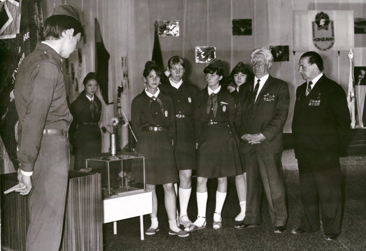 «...Если вспоминать что-то совсем особенное из океанских смен 80-х годов, запавшее в душу, то это - Зал Памятных Красных Знамён. Для его проведения временно был оформлен и оборудован спортзал Дома пионерской учёбы. Там, где выставлялись исторические боевые знамёна, стены были задрапированы красной тканью, фоном для знамён действующих предприятий Владивостока было белое полотно. Чтобы шум шагов не нарушал ход экскурсии, со всех отделов (школы, орготдела, медпункта, отрядных мест) собрали паласы... Сейчас, при современных возможностях, это звучит, вероятно и странно, но тогда...