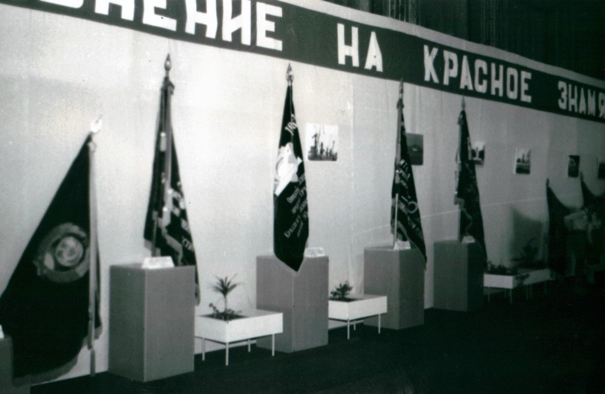 Музей Вооружённых сил СССР доставил в «Океан» 10 знамён, прошедших с боями по фронтам Великой Отечественной Войны, в том числе одно из Знамён Победы.