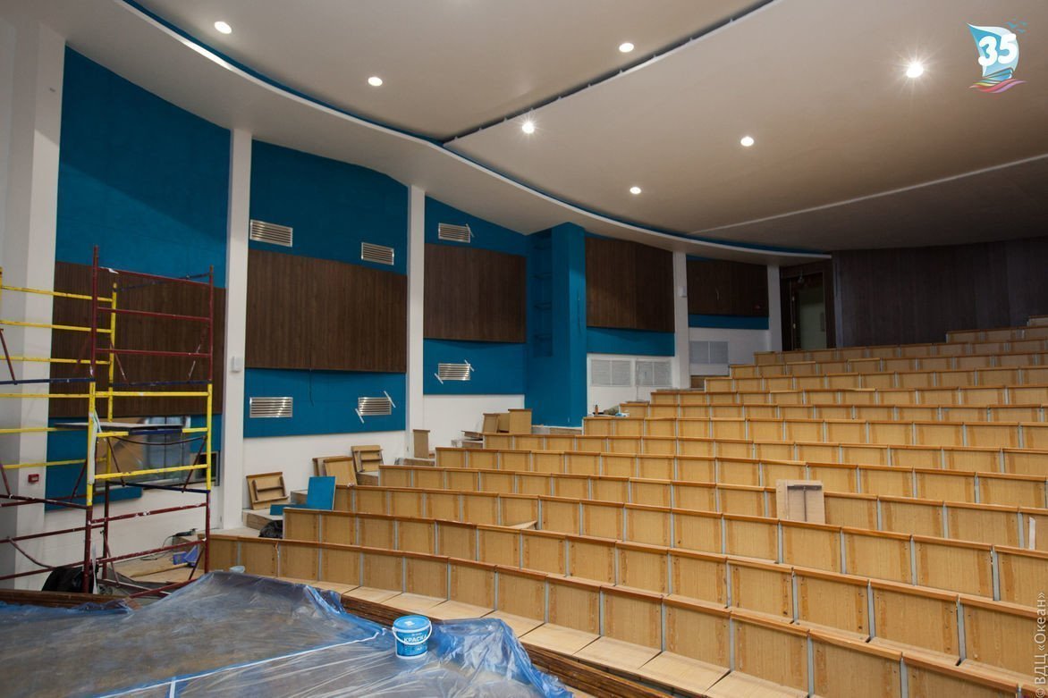 В феврале главная океанская сцена – киноконцертный зал дружины «Бригантина» – ушла на масштабную реконструкцию. Более трёх месяцев она преображалась в новое современное помещение. Были заменены все электрические кабели и внутренняя обшивка зала, установлена современная пожарно-охранная сигнализация, отвечающая современным требованиям противопожарной безопасности. Проведены работы по монтажу потолочных отражателей, а также облицовка и окраска стен и колонн зала.